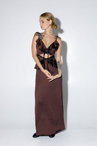 Платье женское свободного силуэта, отрезное по линии талии, расклешённое к низу, выполнено из ткани шифон. По линии талии сборка на резинку «венгерку». По переду кокетки с небольшой сборкой. Воротник стойка переходит в завязку по спинке. Рукава одно шовные втачные свободные, по низу манжет с втачной рюшей на застёжке на две прорезные петли и пуговицы. Платье на тонкой трикотажной подкладке.