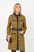 Нарядное женское платье прямого силуэта, выполненное из плательной шифоновой ткани (не тянется), на трикотажной подкладке (тянется). Платье отрезное по линии талии. По лифу переда центральная застежка на петли-пуговицы. Горловина округлой формы, обработана окантовкой, переходящей в завязки. В горизонтальный подрез по переду вставлен волан. Нижняя часть платья присборена по линии подреза. По низу платья – настрочной широкий волан. Рукава втачные, одношовные. Низ рукава собран резинкой, по центру рукава декоративная завязка-бантик.