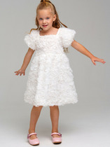 Платье нарядное для девочки полуприлегающего силуэта с втачными короткими рукавами. Платье отрезное по линии талии, полочка и рукава выполнены из ткани с пайетками, юбка пышная с 2-мя слоями сетчатого фатина на подкладке, верхний слой юбки декорирован по