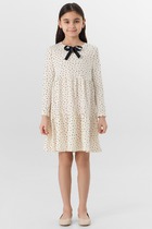 Платье из тонкой, хлопковой, трикотажной ткани, отрезное по талии. Рукав втачной, длинный в нижней части собран на резинку выше уровня загиба. Горловина отделана внутренней обтачкой. На спинке предусмотрен разрез, который застегивается на пуговицу. Низ платья прямой, в сборку. Ткань мягкая, гипоаллергенная, хорошо пропускает воздух.