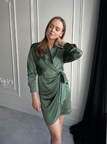 Эффектное двубортное платье длиной миди из облегчённого денима полуприлегающего силуэта. Линия плеча приспущена, рукав втачной три четверти с манжетой и патой. Горловина обработана обтачкой с V-образным вырезом. Линия талии акцентирована притачным поясом. Имеются карманы в боковых швах. Изделие застёгивается на кнопки. Без подкладки.