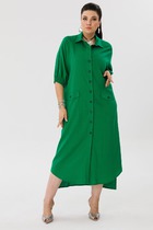Платье свободного прямого кроя из хлопковой кулирки. Рукав втачной, планка по горловине. Вырез круглый. Низ изделия и рукавов имеют плоский шов. В боковых швах разрезы.