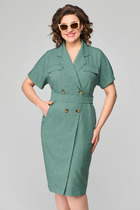 Лёгкое комбинированное платье, состоящее из лифа и юбки. Лиф прямого кроя с втачным рукавом с манжетой и патой на кнопки. Горловина обработана рубашечным воротником с отрезной стойкой. Застёжка центральная на кнопки. Юбка А-силуэта на подкладке.