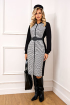 Элегантное платье приталенного силуэта, слегка расширенное к низу. Отрезное по линии талии. На деталях переда и спинки отрезные кокетки. На детали переда средний шов. По верхнему краю и на участке талиевого шва деталей переда и спинки выполнена сборка. Вырез горловины V-образной формы. На детали нижней части переда и спинки талиевые вытачки. Рукав длинный, втачной. Застежка платья на потайную молнию в боковом шве.