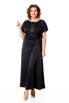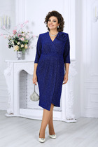 Элегантное платье приталенного силуэта, слегка расширенное к низу. Отрезное по линии талии. На деталях переда и спинки отрезные кокетки. На детали переда средний шов. По верхнему краю и на участке талиевого шва деталей переда и спинки выполнена сборка. Вырез горловины V-образной формы. На детали нижней части переда и спинки талиевые вытачки. Рукав длинный, втачной. Застежка платья на потайную молнию в боковом шве.