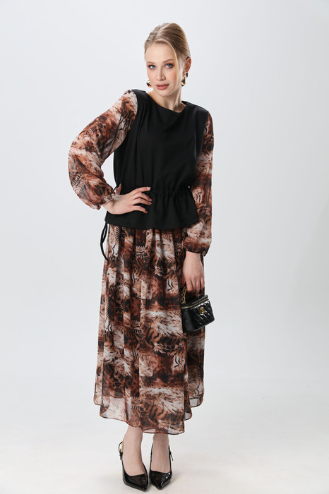 Платье NIKVA н740-26 чёрный и тигровая абстракция