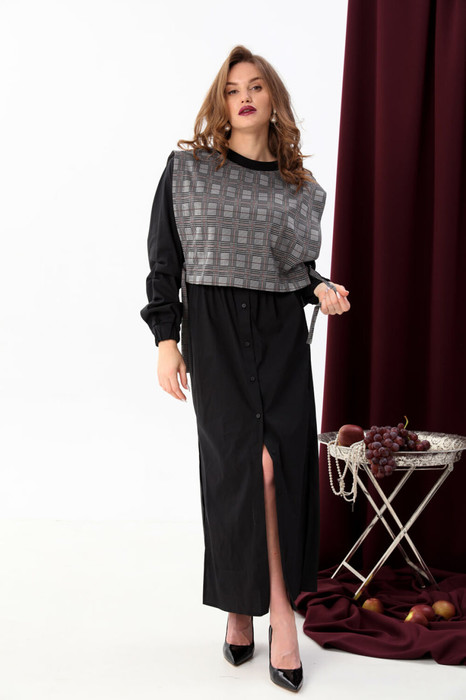 Платье NIKVA н942-1 чёрный+серая клетка