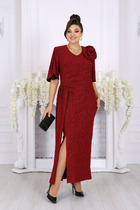 Платье макси с центральной отрезной застёжкой на потайную планку на петли и пуговицы.По переду и спинке цельнокроеные складки на уровне талии. Рукав втачной,одношовный рубашечноно типа. По низу рукава пробиты петли и вставлена завязка для фиксации сборки . Воротник рубашечный стояче отложной. В комплект к изделию идёт пояс из основной ткани для максимально комфортного регулирования объёма.