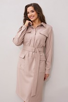 Платье полуприлегающего силуэта с втачными рукавами и рубашечным воротником. Перед с застёжкой на петли и пуговицы по планке. Пояс в комплекте. Перед платья и воротник декорированы дизайнерской вышивкой.