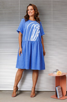 Изящное модное платье из хлопкового полотна. Модель свободной формы полуприлегающего силуэта расширенное к низу. Платье отрезное чуть выше линии талии с двумя ярусами воланов.