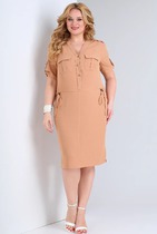 27.03 Vilatte Платье свободное с V-вырезом из 100% хлопка с поясом и разрезом D
