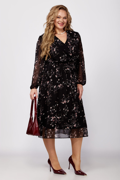 Стильное и удобное платье на запах из фактурной шифоновой ткани. Верхняя часть переда и спинки отрезные по линии талии, для лучшего прилегания в шве предусмотрен съемный пояс. Рукав втачной, длинный, низ рукава на резинке. Платье на трикотажной подкладке. Такое актуальное платье поможет создать женственный и современный образ. Нарядно-повседневное платье подойдет на любой случай, в нем Вы можете посетить свадьбу, день рождения или выпускной вечер.