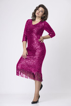 Легкое, воздушное платье из шифона на трикотажной подкладке для женщин подарит ощущение летнего бриза даже в самый знойный день. Этот элегантный наряд обязательно привлечет внимание окружающих! Нежный дизайн ткани добавляет шарм и делает его по-настоящему женственным. Крой А-силуэт нарядного изделия подходит как для повседневного образа, так и для особых случаев. Силуэт модели выделяет женственность фигуры и делает образ стильным. Платье создано для тех, кто предпочитает удобство и стиль в одном флаконе. Миди-длина платья и воланы подчеркнут грацию фигуры и добавят загадочность Вашему образу. Перед платья частично на застежке на петли и пуговицы. Рукав втачной, 3/4, по низу на резинке. Выбрав эту модель, Вы точно будете выглядеть неповторимо на любых мероприятиях!