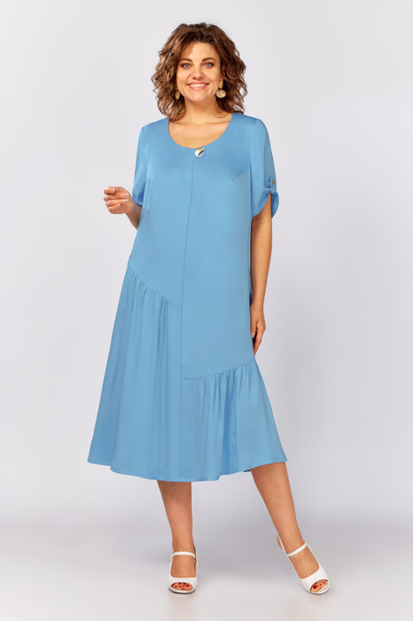 Одно платье длины миди на все случаи жизни? Да! Наше стильное летнее платье можно носить как праздничное, а потом с легкостью трансформировать его в повседневное. Шикарно смотрится как с туфлями на каблуке, так и с кедами. Меняйте свой образ в зависимости от настроения! Платье прямого силуэта расширенного к низу выполнено из натурального вискозного полотна. На полочке и спинке обработаны асимметричные друг другу воланы. По центру переда проложен кант.  На горловине полочки обработана планка, которая декорирована пуговицей. Рукав длиной до локтя. На рукаве обработана пата на петлю и пуговицу.