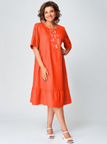Комфортное летнее  платье А-силуэта из плательной ткани лен-вишер смотрится очень оригинально и интересно. Платье из дышащего материала лен вишер   идеально подойдет для полных женщин.  Асимметричный перед со средним швом и диагональными подрезами в области бедер гармонично фрагментируют фигуру и наполняют образ легкостью. В боковых швах есть разрезы и функциональные карманы. Нагрудные вытачки создают прилегание в области груди. Спинка со средним швом, рукав короткий, с патой и пуговицей. Модель украшена изящной нашивкой.  Элегантное и классическое платье легко комбинировать, позволяя создать и деловой стиль,  и вечерний образ для девушек и женщин всех возрастов. Платье  станет отличным выбором для учителей на последний звонок или даже на день рождения. Удобный крой и стильный дизайн делают его идеальным для пышных дам, на все праздники, а также для вечерних прогулок.