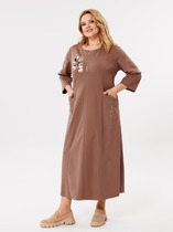 Элегантное платье полуприлегающего силуэта, выполнено из эластичного трикотажного полотна Оттоман. Перед и спинка целые по спинке две вертикальные вытачки. Овальный вырез горловины обработан обтачкой. Рукав втачной длиной 3/4 слегка зауженный к низу. Платье без подклада иВ В застежек. Длина изделия по спинке в 46 р-ре – 103 см.