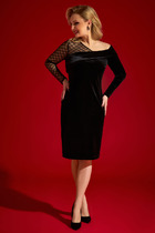Платье: Дл.спины от высшей плечевой точки до талии - 45см, Длина изделия - 102,5см, Длина изделия со стойкой - 109см, Длина рукава - 62см, Ширина плеча - 13см, Ширина по бедрам - 56см, Ширина по груди - 52,5см, Ширина рукава - 18см