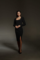 Элегантное трикотажное платье прилегающего силуэта привлекает изящностью линий кроя и мягкостью полотна. Рукав втачной длинный. Резы по перезу образуют V-образый вырез,в котором оформлен двойной воротник,образующий мягкие складки спереди. В горизонтальном резе ниже уровня талии оформлены внутренние карманы. Платье подчёркивает женственность его обладательницы и дарит чувство уюта и комфорта. Прекрасный вариант платья на каждый день для стильной девушки.