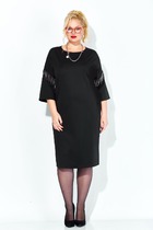 Особое внимание привлекает декоративная тесьма с контрастным жемчугом, которая украшает низ рукавов и подол платья, делая его особенно стильным и модным. Такое решение добавляет изысканности и подчеркивает нарядный характер изделия. Платье идеально подходит для коктейльных вечеринок, новогодних праздников или корпоративных мероприятий. Однако его базовый дизайн и универсальность позволяют использовать его и в повседневной жизни для офисных или деловых встреч.