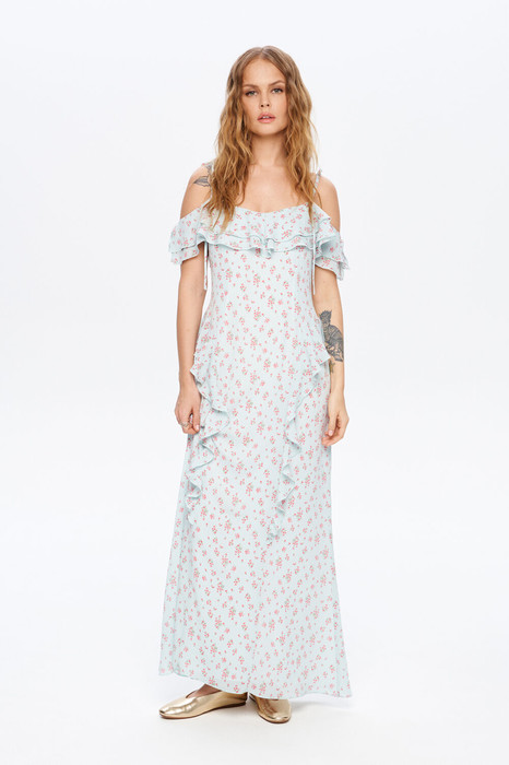 Макси-платье с воланами.