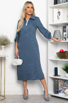Платье прямого силуэта в длине миди, выполнено из струящейся ткани с благородным матовым блеском и актуальным абстрактным дизайном. Округлый вырез горловины. Рукава длинные втачные. Застежка по спинке в среднем шве «капля» на пуговицу и навесную петлю. По низу в боковых швах обработаны высокие разрезы.