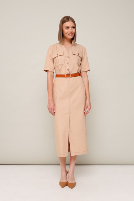 Спереди по низу неглубокий разрез,что добавляет элегантности и женственности этой модели. Ремень в комплекте.