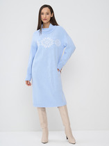 Платье из шифона с абстрактным принтом, отрезное выше линии талии. Горловина округлой формы. Лиф платья с застежкой на притачные планки с петлями и пуговицами. Нижняя часть платья с притачным воланом со сборкой. Рукава длинные втачные на резинке в области запястья. В комплекте прилагается нижнее платье-комбинация на регулируемых бретелях.
