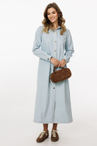 Платье-рубашка свободного кроя с воротником на стойке. Рукав цельнокроенный Вѕ с притачной манжетой. В рельефных швах переда карманы. Застёжка на петлю, пуговицу. По бокам разрезы. Длина изделия 114 см.