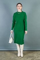 Платье женское из гладкокрашеной плательной ткани, отрезное по линии талии, расширенное книзу, с короткими цельнокроеными рукавами, обработанными манжетами. По центру полочки выполнена декоративная планка, по соединительном шву лифа и юбки заложены встречные складки.