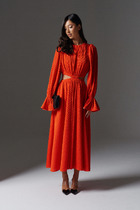 Складка на спинке позволяет получить дополнительную свободу. Платье для леди, которые любят утонченность и комфорт. Декоративная манжетка по рукавам съемная, фиксируется пуговичками.