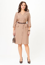 Платье женское полуприлегающего силуэта длиной выше колен. Рукав втачной короткий. По окату рукава сборка. По переду платья кокетка. Ниже линии кокетки пять защипов. Вырез горловины назапах до уровня кокетки. Низ переда декорирован тремя горизонтальными складками. Спинка со средним швом и талиевыми вытачками.