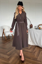 Vilatte Платье на запАх из вискозы с принтом D22.258 черный-коричневый
