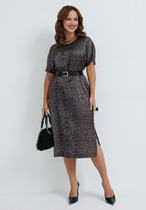 Платье из тонкого текстиля Х-образного силуэта, отрезное по линии талии.