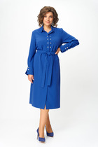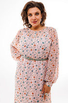 Платье из эластичного трикотажного полотна полуприлегающего силуэта. По переду обработаны нагрудные вытачки. Спинка цельнокроеная. Рукав втачной одношовный длиной 4/5 с манжетой из декоративного трикотажного довяза. В боковых швах обработаны карманы. Горловина V-оборазной формы, обработана декоративным трикотажным довязом.