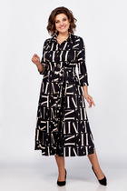 Платье из текстиля  прилегающего силуэта. Платье отрезное по линии талии. По переду и спинке лифа расположены рельефы. Юбка расклешенная из шести клиньев со встречными складками по линии талии. В среднем шве спинки предусмотрена молния. Рукав втачной покроя тюльпан, длина рукава 15 см. В комплекте ремень с декоративной пряжкой.
