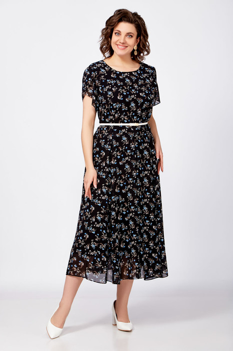 — Платье Swallow 814 черный+бежево-голубые цветы