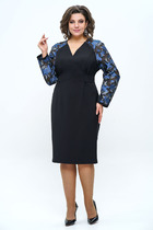 Платье из креп-шифоновой ткани, на трикотажной подкладке, отрезное по линии талии, шов собран на эластичную тесьму-резинку. Горловина округлой формы, по переду капелька с завязкой. Рукав втачной одношовный, внизу со сборкой и манжетой, которая застёгивается на 2 петли и пуговицы.