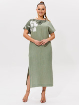 Элегантное, нарядное платье А-образного силуэта. Рукав выполнен из плотной сетки с напылением ФЛОК. Перед платья также декорирован ФЛОКОМ.