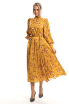 Стильное штруксовое платье в стиле сафари отлично впишется в Ваш осенний гардероб! Платье слегка расширено к низу. На переде обработаны два кармана c листочками, два накладных кармана в области груди с отделочной тесьмой, застёжка на 3 петли и пуговицы. Спинка слегка удлинена по отношению к переду, боковой шов с отделочной вставкой, декорированной тесьмой с полукольцом и полукруглыми разрезами внизу. Рукав втачной, одношовный, внизу присобран патой. Воротник стояче-отложной со стойкой. Длина от центра горловины спинки до низа около 105 см для размеров 54,56,58; 108 см - для размеров 60,62,64, длина рукава в застёгнутом виде 45 см, в расстёгнутом 52 см. Материал хорошо тянется.