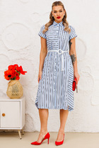 Стильное платье-рубашка прямого силуэта, выполненное из однотона и ткани в полоску. Свободный крой придает лёгкость и естественность модели.
