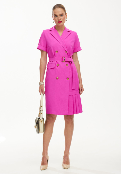 Элегантное двубортное платье который сезон будоражит умы дизайнеров. Яркое и женственное платье идеально подходит как для офисных луков, так и для вечера в ресторане. Украшение платья служат складочки по нижней полочке платья.