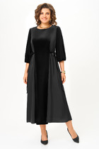 Платье полуприлегающего силуэта, длиной миди. Перед платья с нагрудными вытачками, с цельнокроеной планкой, которая застёгивается на петли и обтяжные пуговицы. Правая делать переда, в области талии, образует мягкую драпировку, переходящую в пояс. По левой стороне деталь пояса вставлена в боковой шов. Спинка цельнокроенная, с талиевыми выточками. Обратите внимание на разрезы по боковым швам, они обязательно пригодятся. Рукава втачные, длинные, с притачной манжетой, которая застёгивается на петли и пуговицы. Горловина обработана стойкой с воротником рубашечного типа.