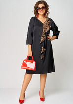 Платье А-силуэта длиной "мидакси", выполненое из струящейся плательной ткани, отрезное по линии талии. Перед с нагрудными вытачками и двухбортной застёжкой на петли и пуговицы. Горловина обработана воротником жакетного типа. Спинка лифа с кокеткой и встречной центральной складкой. Нижняя часть платья спинки цельнокроеная. По переду и спинке в области талии обработаны шлевки для пояса с пряжкой, который входит в комплект платья. Рукав втачной, короткий, формы "тюльпан", который удлиняется до линии локтя в зависимости от размера. В  боковых швах платья  обработаны карманы.
