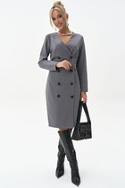 Женственное платье приталенного силуэта изготовлено из трикотажного полотна.V-образная горловина с цельнокроеной стойкой. Втачной рукав длиной 7/8. Модель отрезная по линии талии на запахе, сбоку пояс-завязка. Низ ровный, без разрезов.