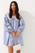 Платье молодежное, свободного покроя, с V- образным вырезом горловины, без рукавов. Горловина и проймы окантованы основным материалом, низ изделия с притачной оборкой. Акцентной деталью платья являются узкие завязки, вставленные в горловину с изнаночной стороны, завязывающиеся на бант спереди, которые при желании изменить внешний вид изделия, могут быть убраны вовнутрь.