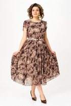 Платье молодежное, свободного покроя, с V- образным вырезом горловины, без рукавов. Горловина и проймы окантованы основным материалом, низ изделия с притачной оборкой. Акцентной деталью платья являются узкие завязки, вставленные в горловину с изнаночной стороны, завязывающиеся на бант спереди, которые при желании изменить внешний вид изделия, могут быть убраны вовнутрь.