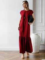 Vilatte Платье с воланом изо льна с вискозой D22.207 гранатовый