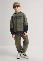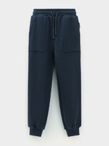 Брюки-джоггеры детские для мальчика. Выполнены из хлопкового трикотажа футер без начеса. Модель прямого кроя со средней посадкой на талии. Пояс выполнен на резинке, дополнительно регулируется шнурком. По бокам — удобные карманы. В нижней части брючин предусмотрены эластичные трикотажные манжеты для лучшей фиксации. Брюки украшены нашивками.