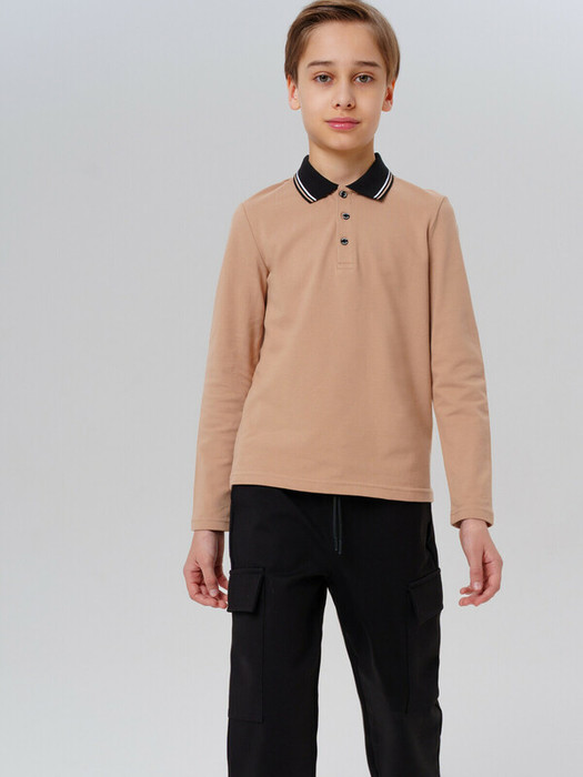 Идеальный вариант для школы – стильное и практичное бежевое поло с длинным рукавом станет универсальной основой школьного гардероба. Модель выполнена из качественного хлопкового пике, что обеспечивает комфорт в течение всего учебного дня.
