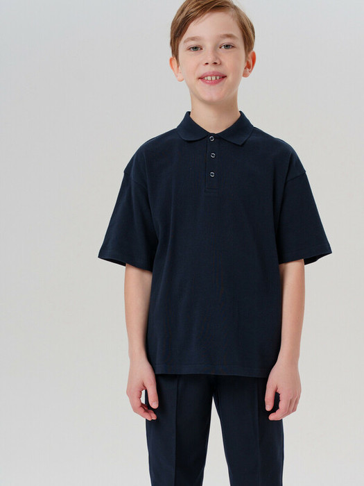Классическое темно-синее оверсайз поло с коротким рукавом для мальчика